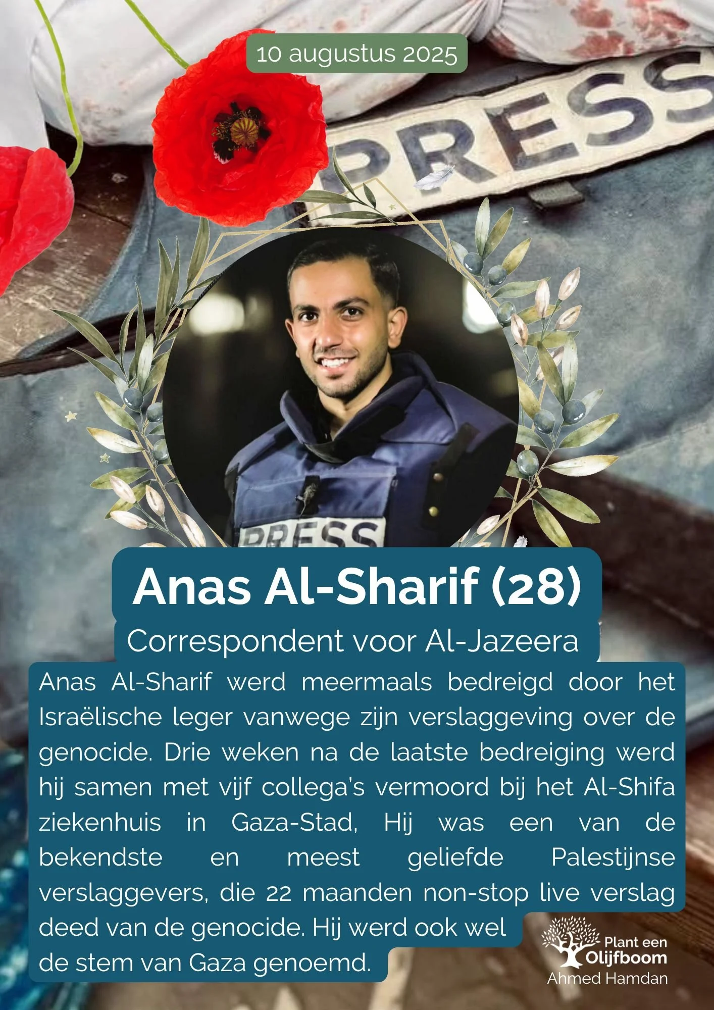 21 januari 2026 zijn opnieuw drie journalisten in Gaza vermoord door een raket van het Israëlische bezettingsleger. Waar is de verontwaardiging voor de vermoorde collega’s in de media? Veel media heeft niet of nauwelijks aandacht besteed aan deze moorden door het Israëlische regime.