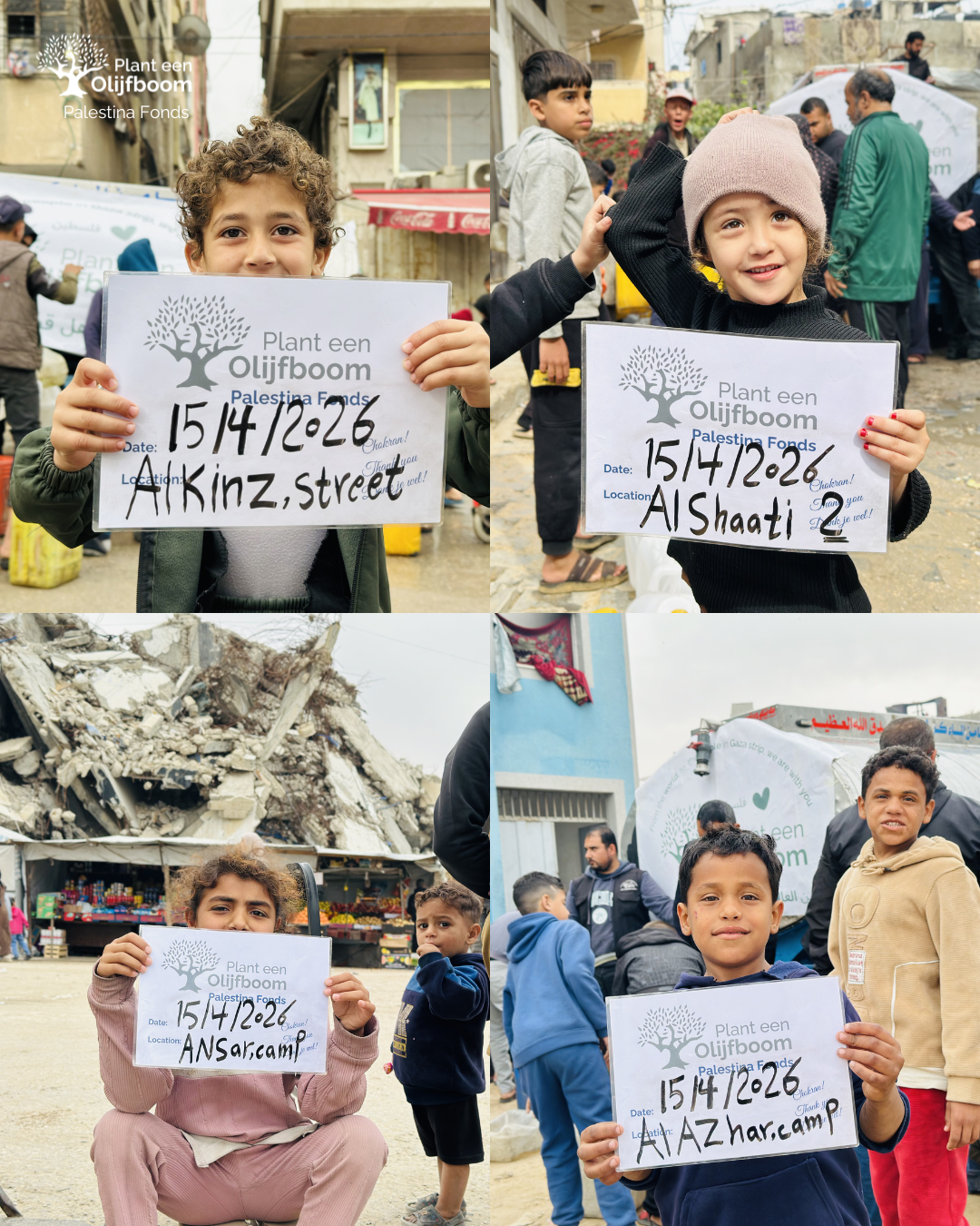 Plant een Olijfboom ondersteunt Palestijnen in nood via het Palestina Fonds. Mens tot mens. 100% van de donaties gaat naar Palestina. De stichting Plant een Olijfboom staat voor een rechtvaardige vrede in Palestina met gelijke rechten voor alle burgers, inclusief Palestijnse vluchtelingen.