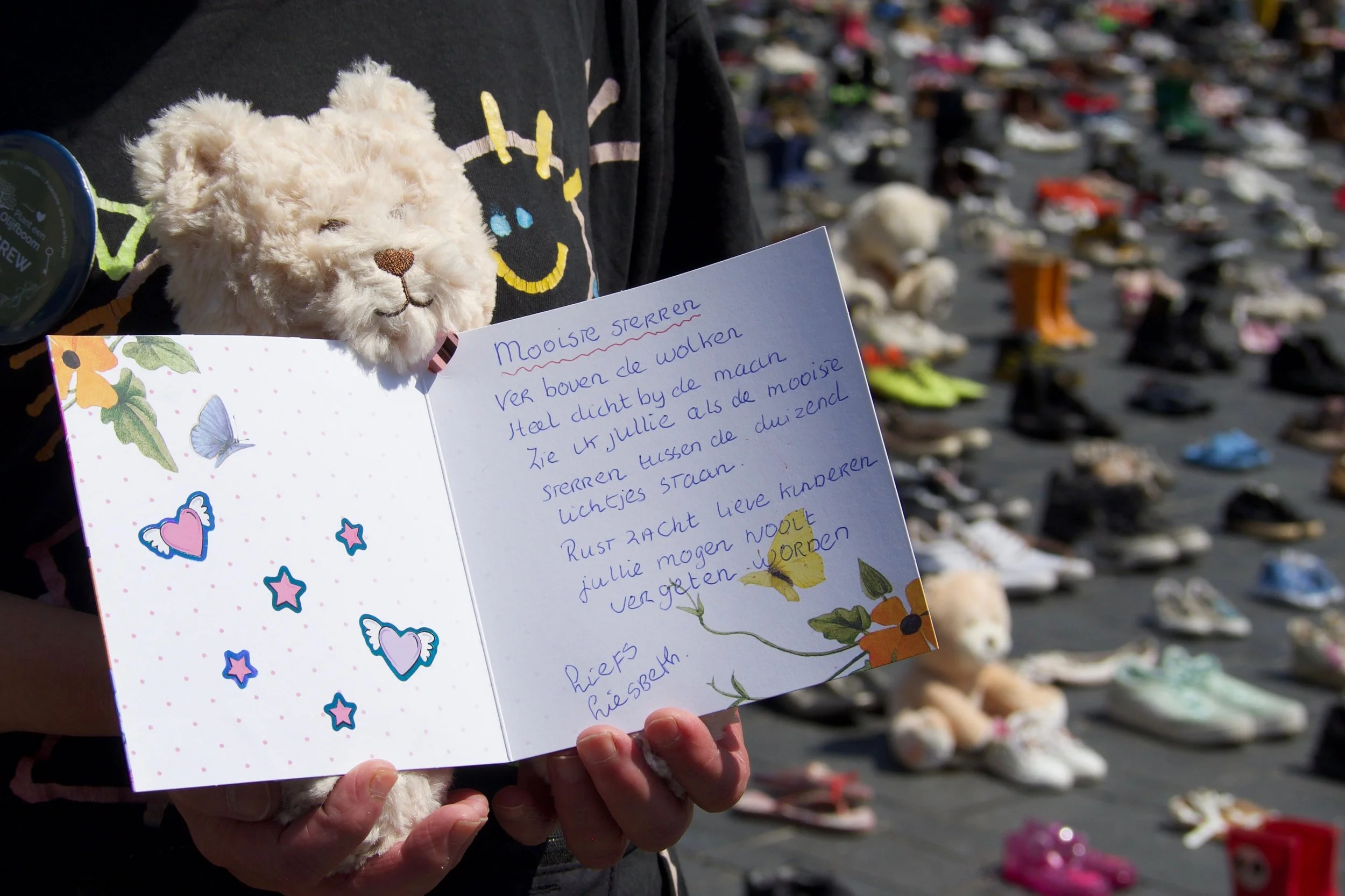 De herdenkingsprotesten zijn een moment om gezamenlijk te rouwen. Iedereen is daarom zondag 20 juli welkom op het Marktplein in Apeldoorn. Tussen 12u en 17u kan een knuffeltje, bloem of briefje bij de schoenen neergelegd worden. Ook mogen mensen zelf kinderschoenen bijzetten, want dagelijks stijgt het aantal Palestijnse kinderdoden.