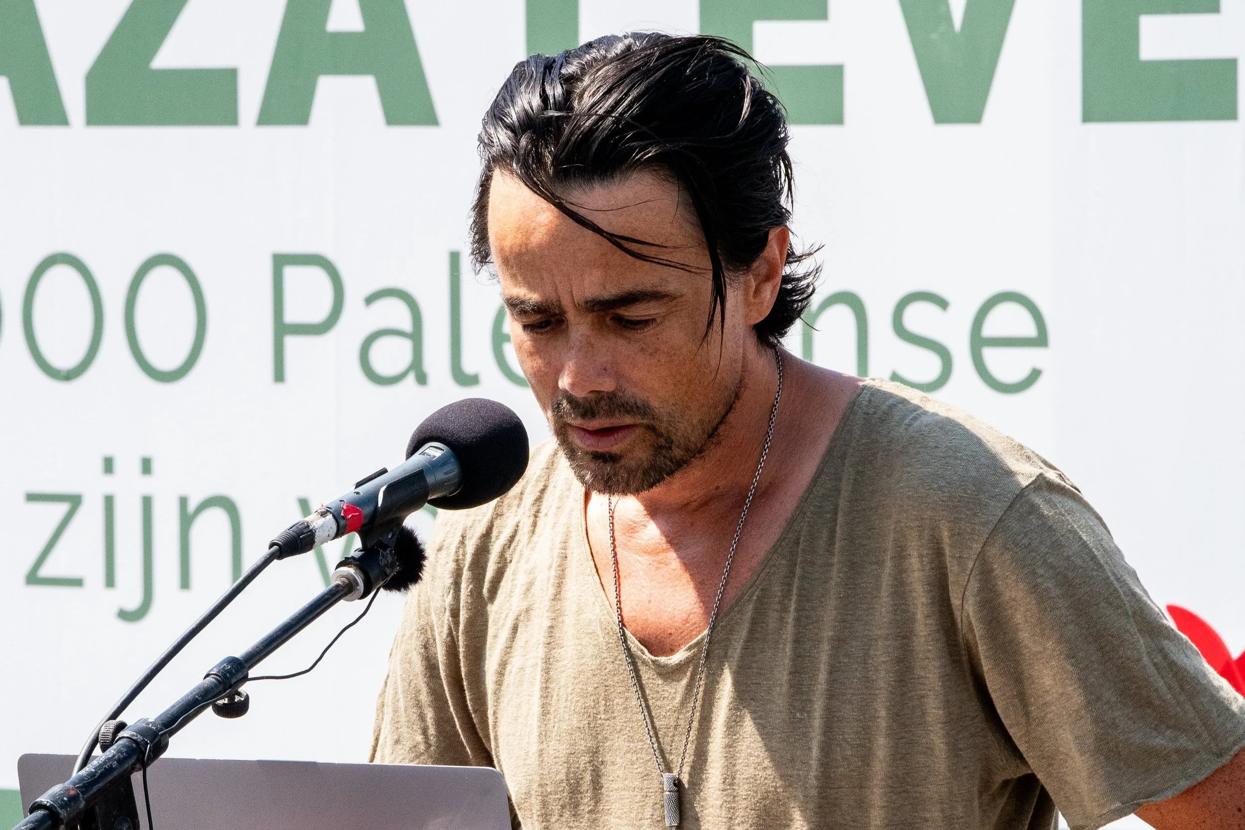 Jörgen Raymann leest namen tijdens herdenkingsprotest in Almere. Foto: Amir Zaza