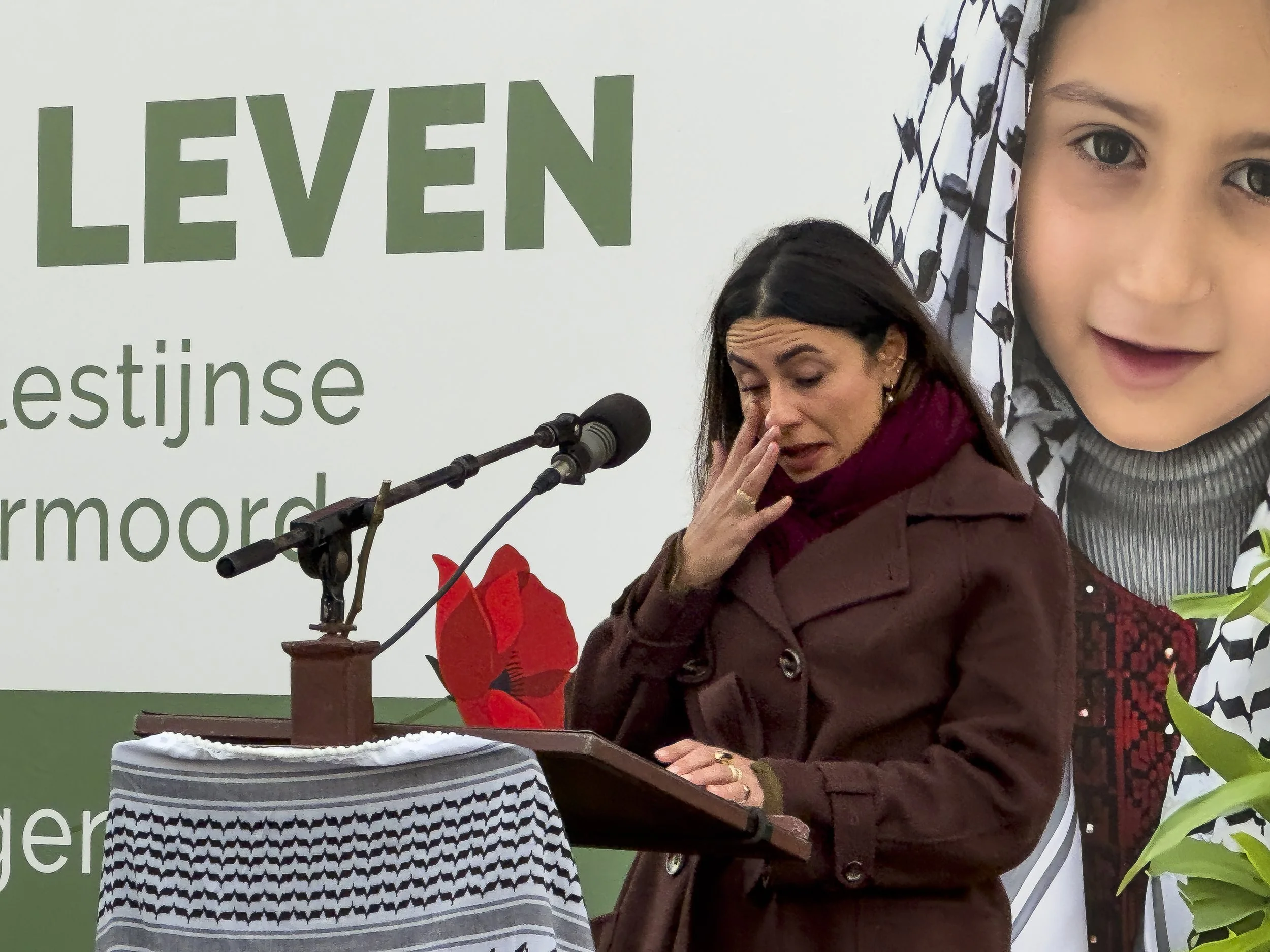 Nadia Moussaid leest namen tijdens een herdenkingsprotest. Foto Harrie van Veen
