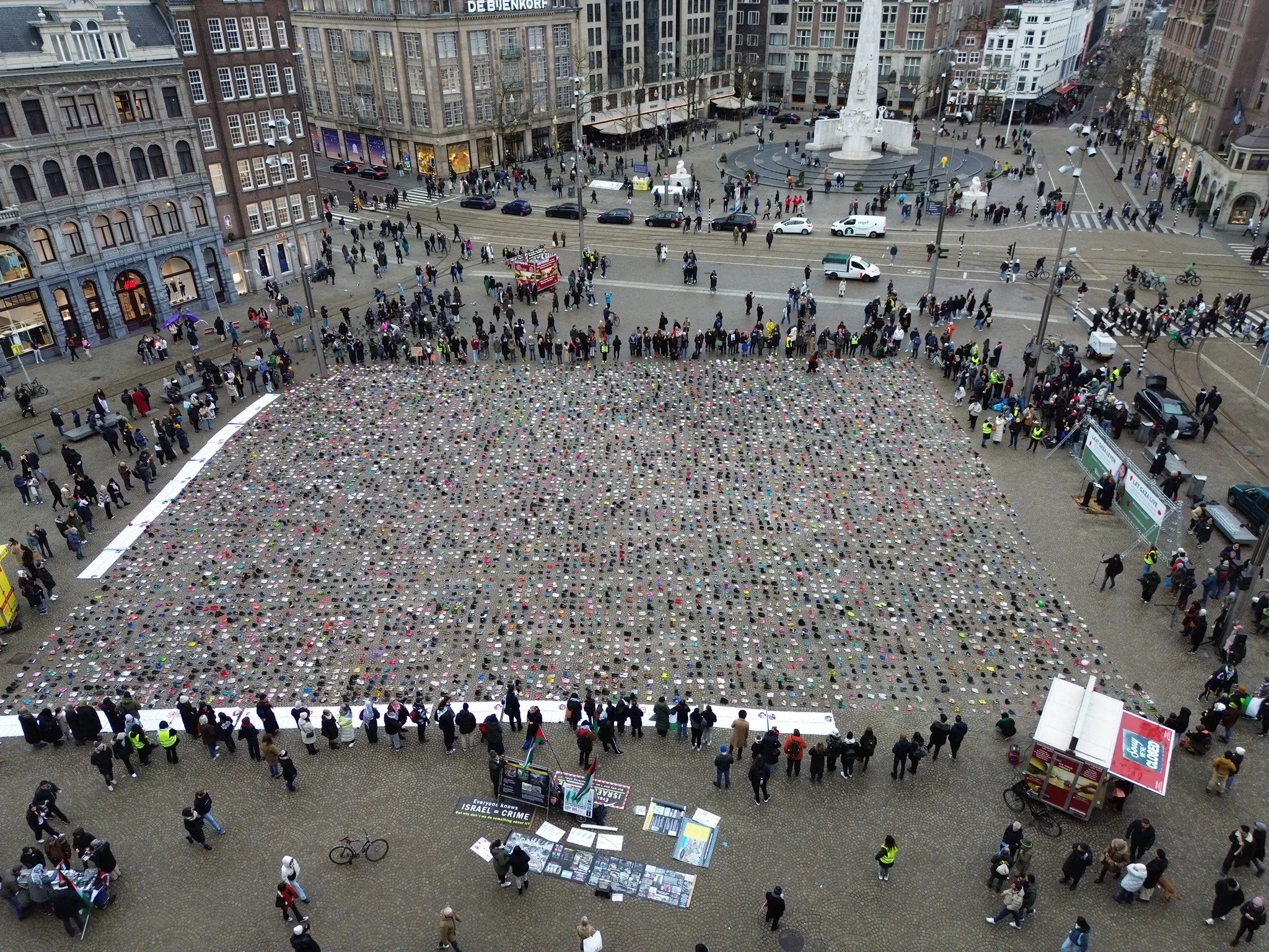 In januari 2024 werd het herdenkingsprotest ook op de Dam in Amsterdam georganiseerd. Toen zijn er 10.000 paar kinderschoenen neergezet. We creëren zichtbaarheid voor het ongekend aantal kinderen dat de afgelopen 30 maanden is vermoord. Volgens de officiële cijfers zijn dit er al meer dan 20.400 - maar berekeningen tonen aan dat het werkelijke aantal veel hoger ligt. Omdat er nog veel kinderen vermist worden, onder het puin liggen en er vele indirecte doden zijn, zoals door uithongering of ziektes die niet goed behandeld konden worden omdat Israel medische hulpmiddelen en medicijnen niet doorlaat en duizenden zieken niet laat uitreizen. Door het gebruik van illegale wapens waarmee lichamen verdampen zullen ook veel kinderen nooit gevonden en begraven kunnen worden.