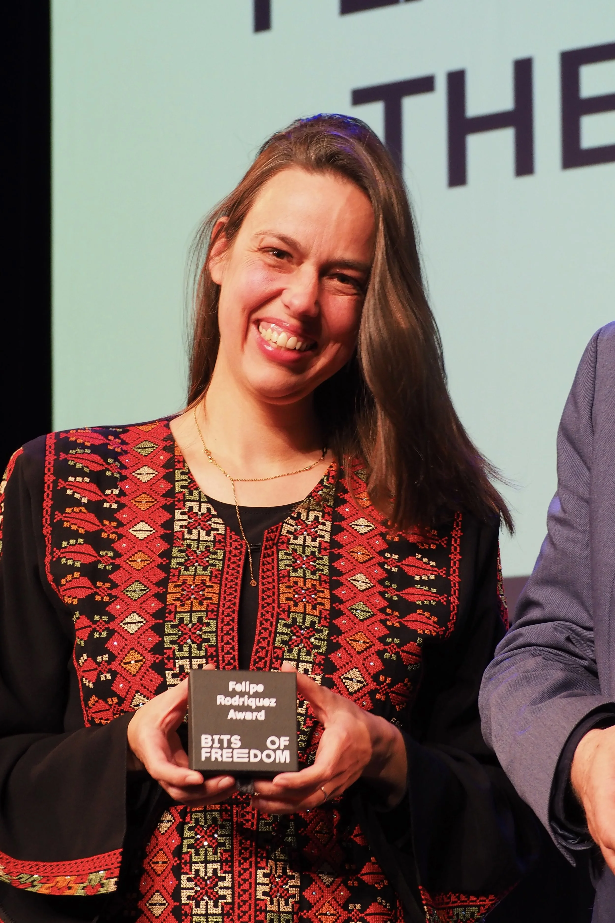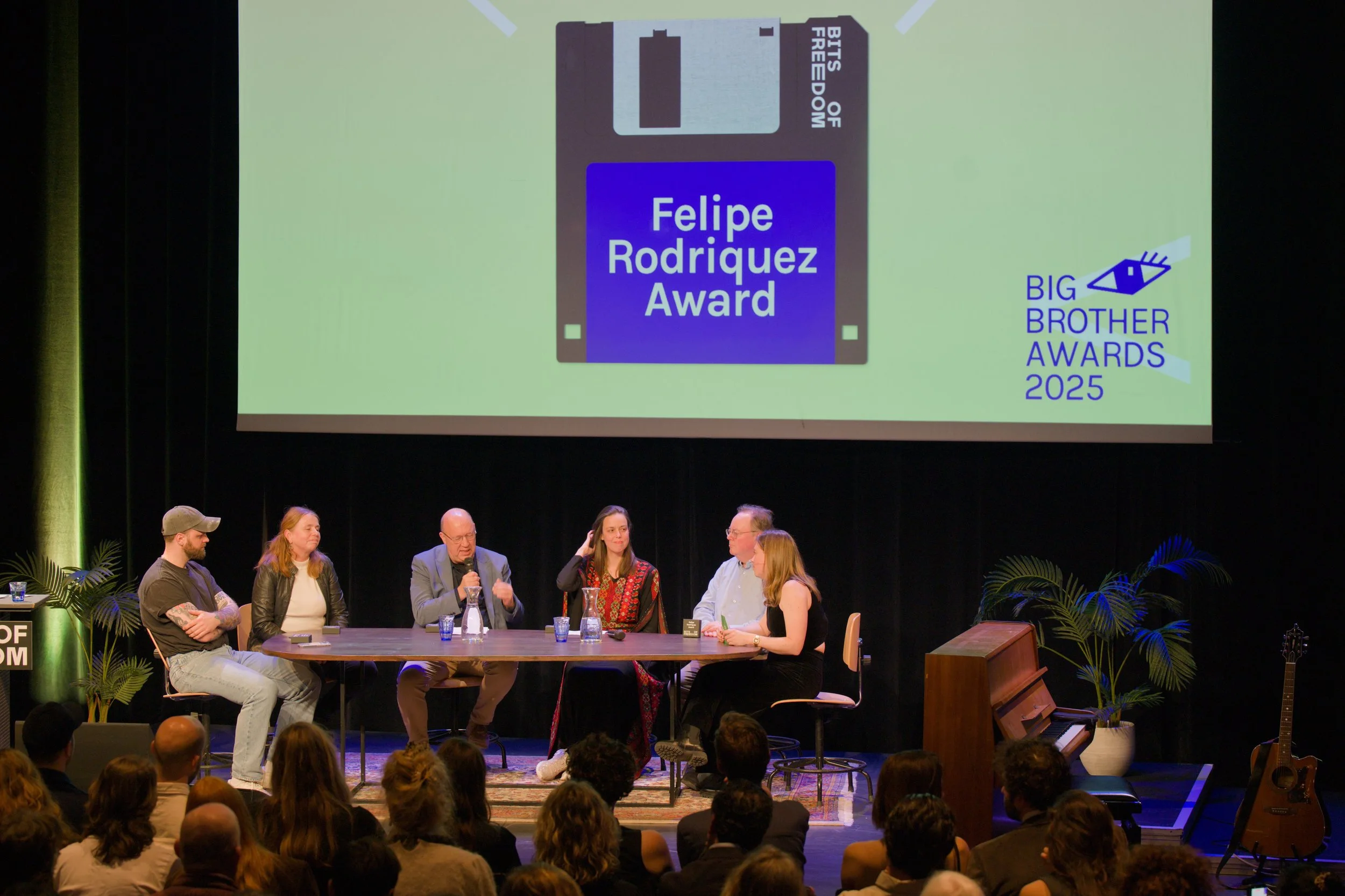 “De campagne die jullie samen met Pax en The Rights Forum voerden over het wetsvoorstel om ‘verheerlijking van terrorisme’ en openbare steunbetuigingen aan zogenoemde terroristische organisaties strafbaar te stellen, zorgde voor bewustwording over de gevaren van dit wetsvoorstel voor individuen en onze maatschappij. Dit vond Bits of Freedom zo belangrijk en inspirerend dat we jullie gezamenlijk hebben uitgeroepen tot winnaars van de Felipe Rodriquez Award 2025. Dit is een positieve prijs die we elk jaar uitreiken aan een voorvechter van het recht op privacy.”