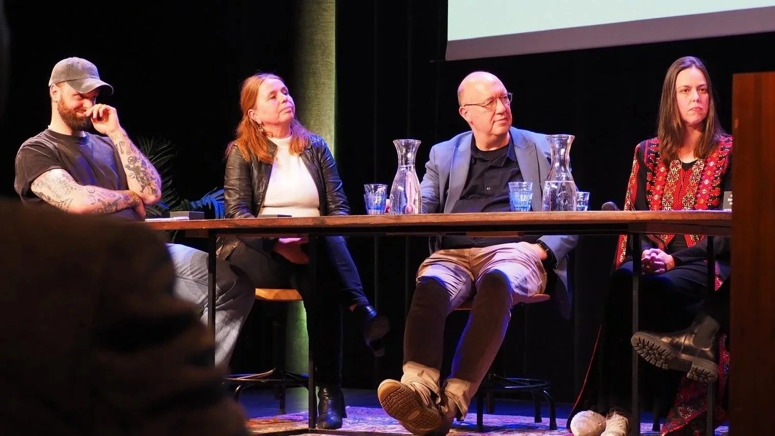 V.l.n.r. Tim Hofman (BOOS), Rolien Sasse (Pax), Gerard Jonkman (The Rights Forum), Esther van der Most (Plant een Olijfboom)