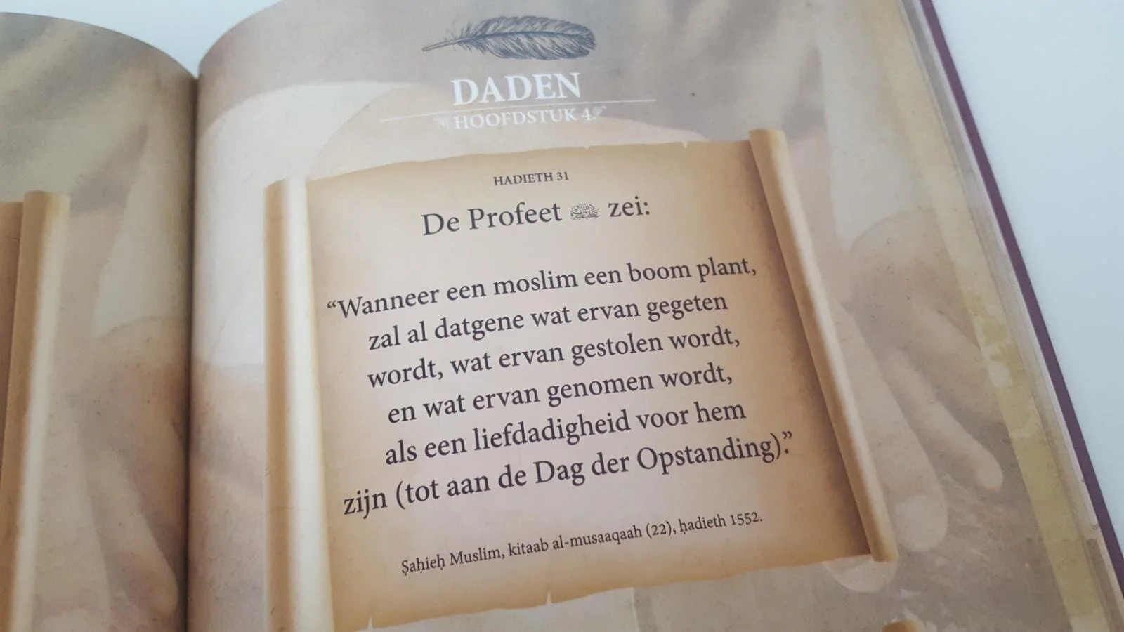 “Er is geen moslim die een boom plant of een veld zaait en er vogels, mensen of dieren van eten zonder dat het hiermee een liefdadigheid is voor hem.”