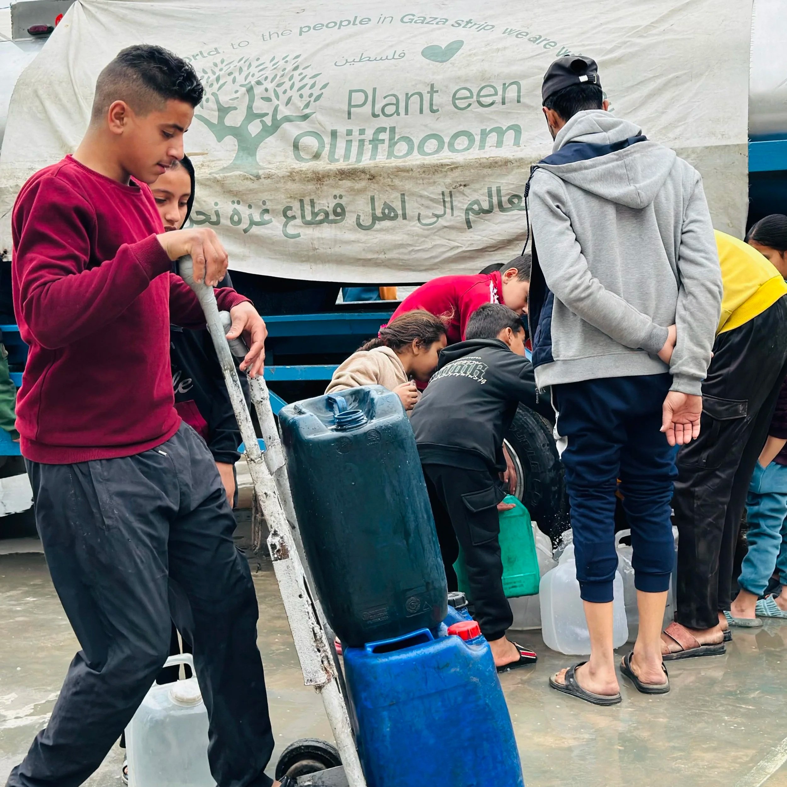 We zeggen er expliciet bij dat we “voornemens zijn om”, omdat de genocide niet gestopt is en we nooit weten of er iets gebombardeerd zal worden. Dat is de reden dat we eigenlijk nooit vooraf aankondigen welke steun we zullen geven met ons Palestina Fonds. Of het bijvoorbeeld kleding, dekens, schoolspullen of andere hulp zal zijn. Wat we wel zeker weten is dat we ondertussen al jaren schoon drinkwater uitdelen. Momenteel op 7 locaties per dag, 5 dagen per week. Dus meer dan 140 locaties per maand. En dat we nooit gestopt zijn met de wisselende andere hulp. Over deze 1.000 voedselpakketten zijn we trouwens behoorlijk zeker dat het gaat lukken, en jouw hulp is enorm welkom.